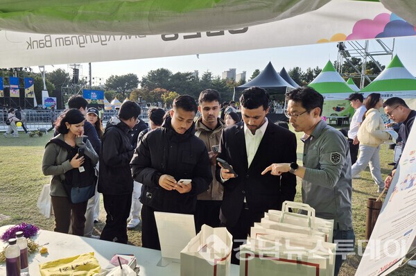 개인고객부 직원과 외국인 직원들은 BNK경남은행 부스를 설치하고 금융상품 및 해외송금서비스 이용 방법을 설명했다.