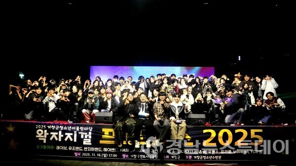 (거창=경남뉴스투데이) 거창군은 지난 16일 거창죽전도시숲공원에서 2025년을 마무리하는 청소년 문화축제 ‘거창군청소년어울림마당 왁자지껄–PROYOUTH 2025’를 성황리에 개최했다. 이번 행사는 거창군이 주최하고 거창군청소년수련관이 주관했으며, 올해 다섯 번째이자 마지막 무대로 청소년과 가족 등 400여 명이 함께했다.