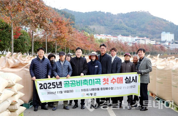 (하동=경남뉴스투데이) 하동군이 지난 18일, 하동읍 너뱅이들 일원에서 2025년산 공공비축미 건조벼의 첫 수매를 시작했다.