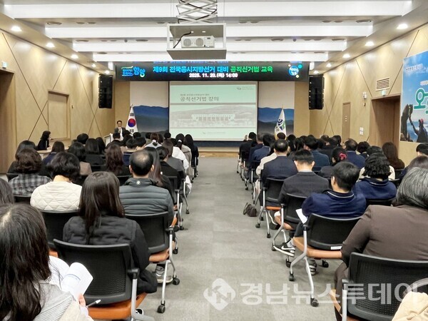 (함양=경남뉴스투데이) 함양군은 지난 20일 군청 대회의실에서 전 직원을 대상으로 제9회 전국동시지방선거 대비 공직선거법 교육을 실시했다.