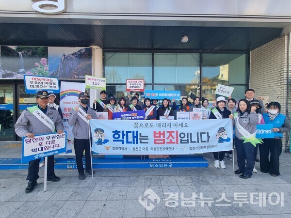 (합천=경남뉴스투데이) 합천군은 지난난 24일(월) 합천읍 시외버스터미널 일대에서 제19회 아동학대 예방의 날을 기념하여 아동학대 예방주간 캠페인을 실시했다.