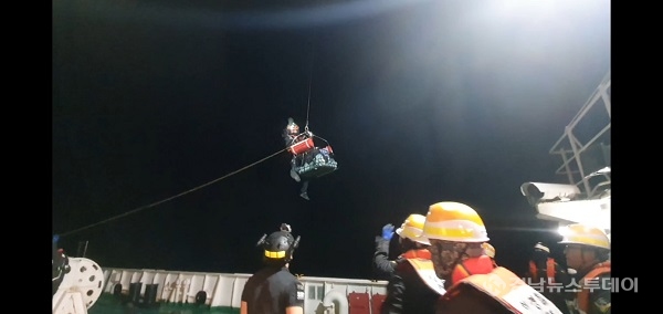 해경은 어선 신고를 받고 경비중인 대형 함정을 급파해 A씨를 헬기를 이용해 부산 소재 병원으로 이송해 치료를 받고 있다.